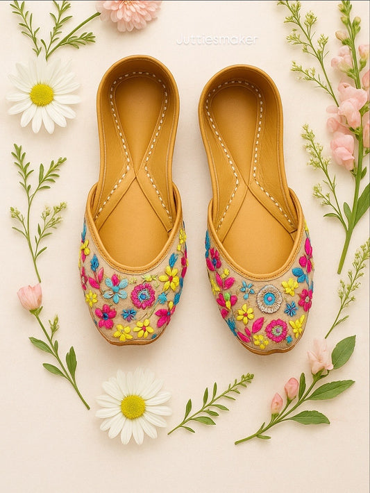 Phoolwari Glow- Handcrafted Leather Jutti